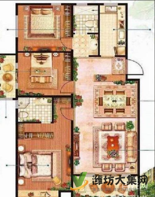 1.房子是三室兩廳 ,南北通透,客廳朝?陽,采光超級好